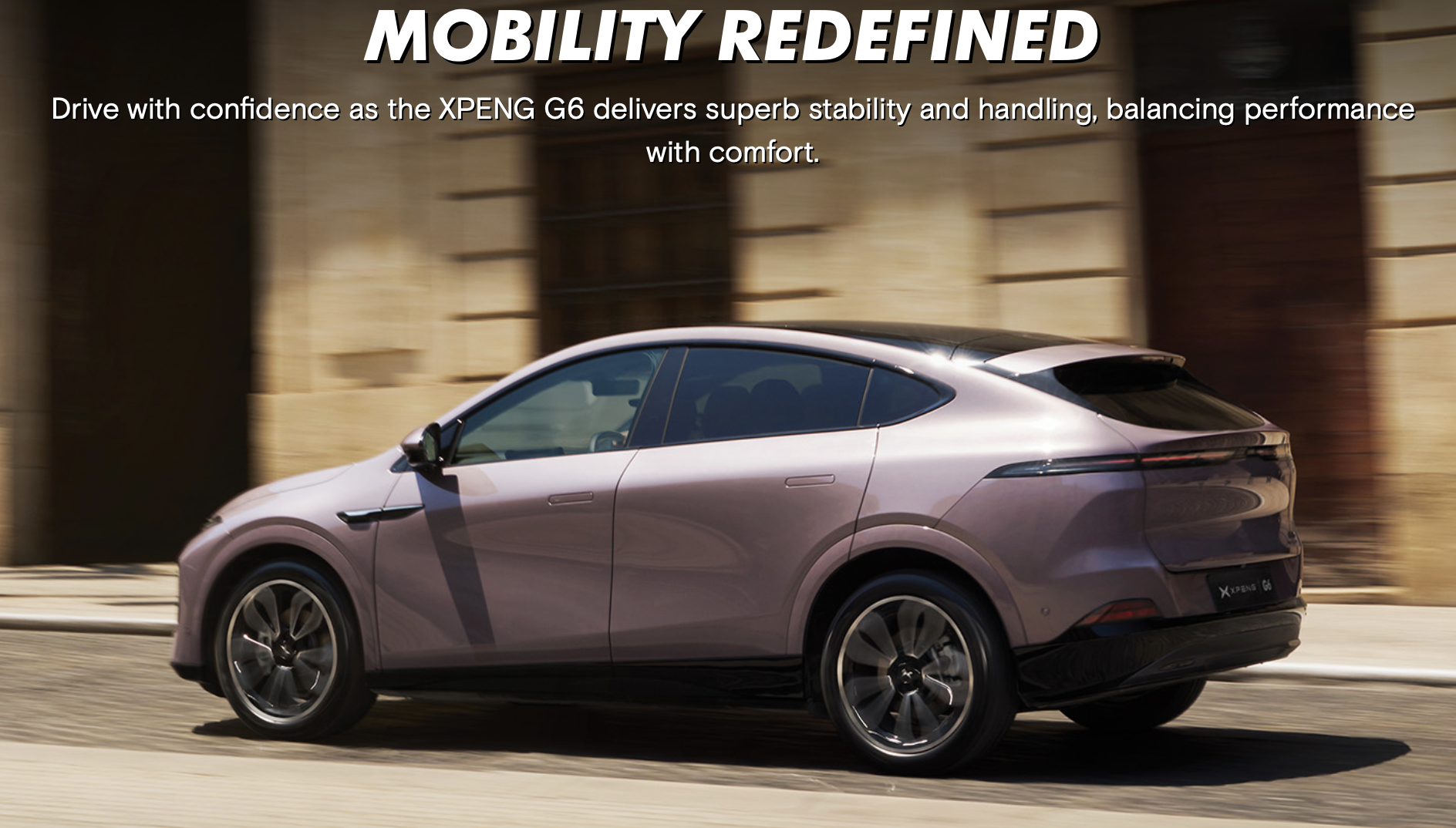 The XPeng G6 delivers instant electric power with smooth, responsive acceleration and impressive driving range.