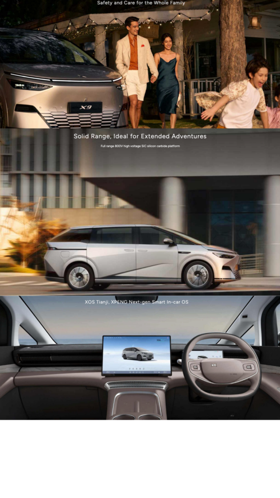 The XPeng X9 delivers commanding all-electric performance with instant torque, smooth acceleration, and impressive long-range capability.
